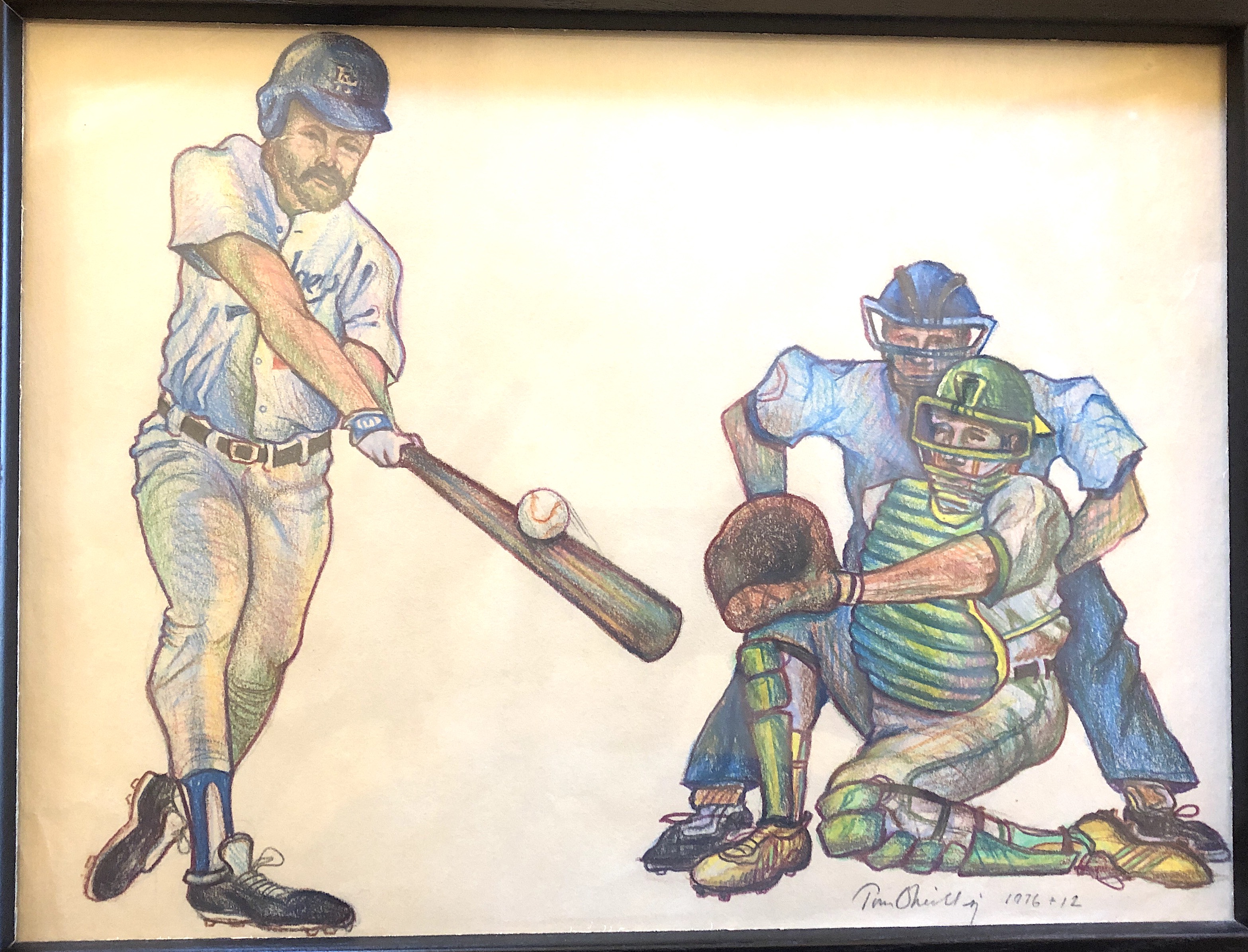 My best friend since the day I entered the Society of Jesus was Mark Toohey. He died way too young of a brain tumor. Mark was an avid Dodgers fan. I was — and am — a Giants fan. In 1988, the Dodgers won the World Series. The most memorable moment of that series was the heroic home run hit by Krik Gibson. As a gift to Mark, I did this drawing for him.The quality of this image isn’t great. It’s a photo of the drawing that Mark’s brother sent to me. The date on the drawing is 1976 (our entrance date into the Jesuits) + 12 years.