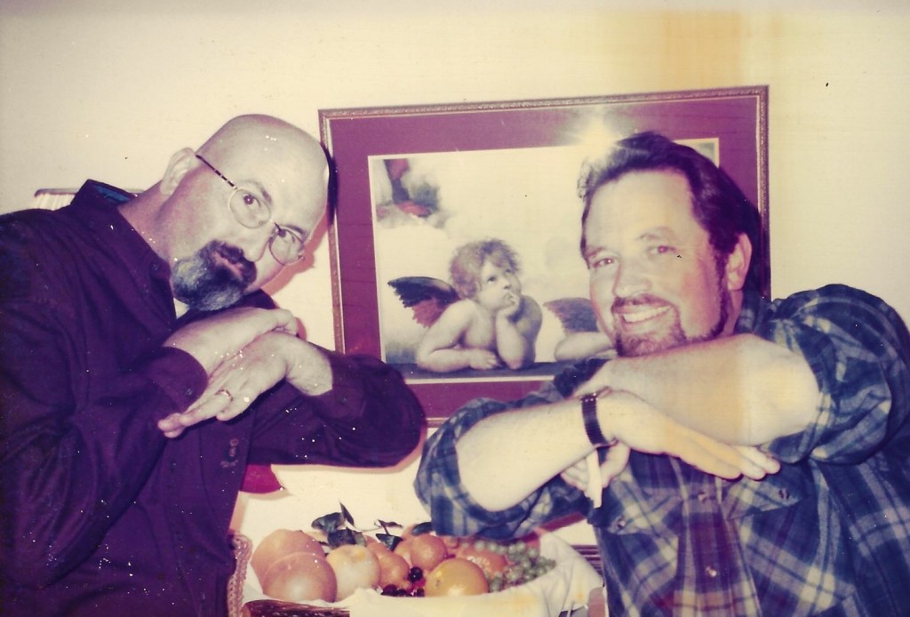 It was my friend Tom McCormick who urged me to pursue an M.F.A. in painting. Tom was always the loving guardian angel on my shoulder, seeing my gifts, encouraging my dreams and loving me as I was. And am. Here is a photo taken at the good-bye party given my by friends when I left Loyola High to begin the pilgrimage to Brooklyn. It’s my favorite photo of Tom and Tom.