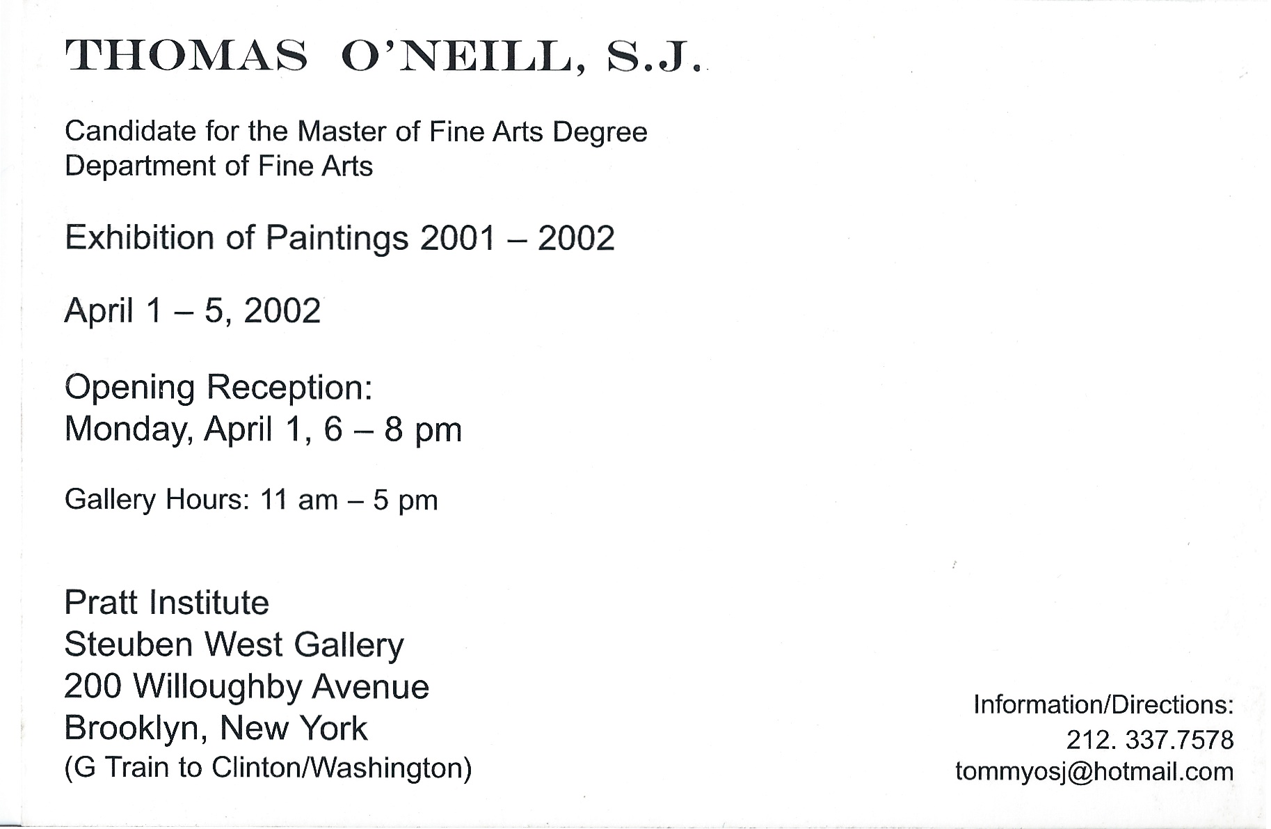 Well, rejection sucks. So figured that graduate work in Fine Art just wasn’t part of the plan. Until the first week of May. One morning, a large manila envelop appeared in my mailbox: “Congratulations…” Not only was I accepted into an M.F.A. program, but it was to be in the greatest city on earth. New York.