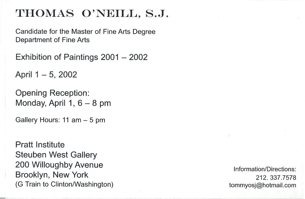 Hello. My name is Tom O’Neill. I am a Jesuit priest and painter currently living in Los Angeles. This blog is a way for me to share some of my paintings. My friends tease me because, aside from my MFA show back in 2002, I rarely show any of my work.